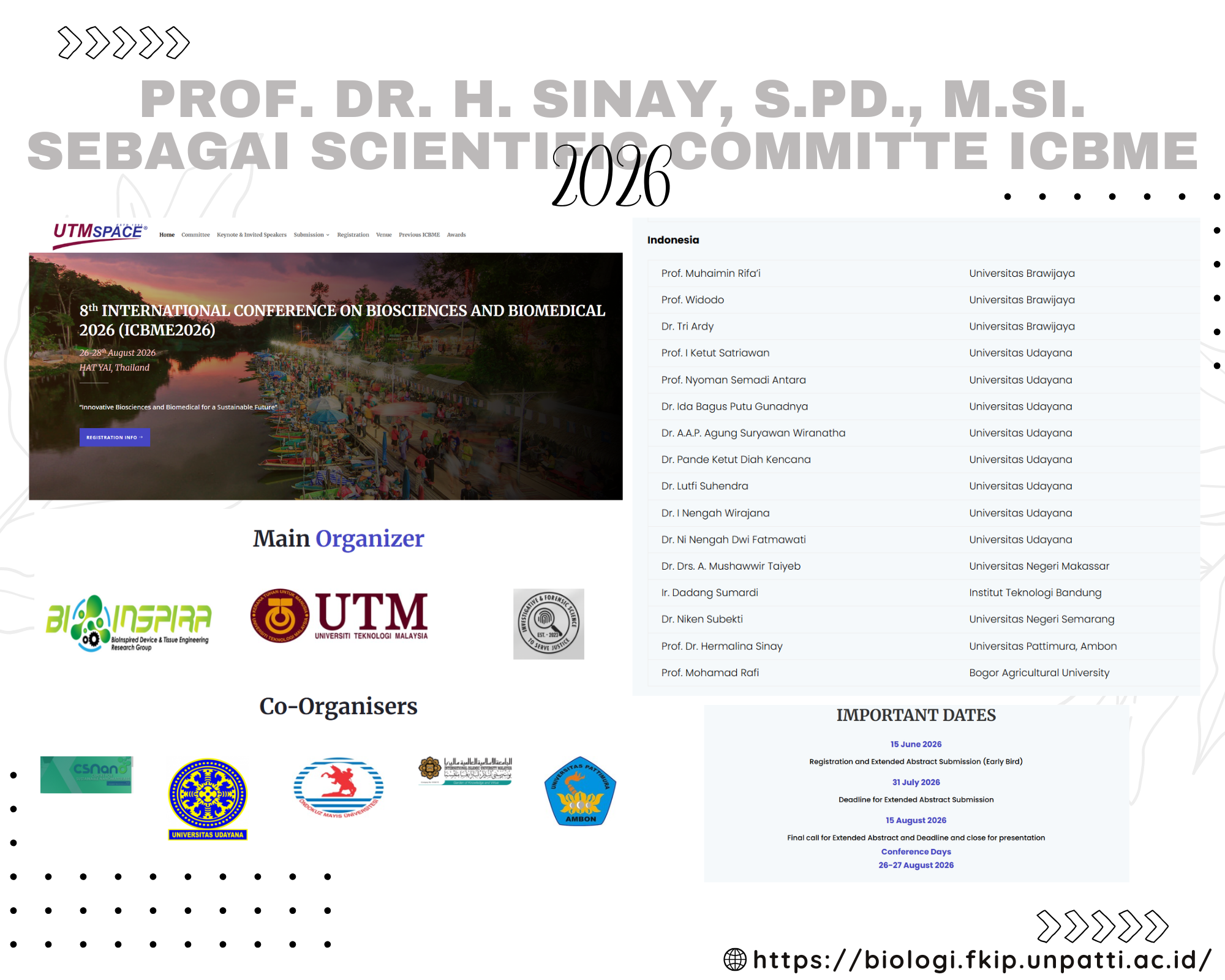 #prestasidosen #scientificcommitte #internationalconference #ICBME2026 #UTM #pendidikanbiologi #FKIP #unpatti #sobatmudamendunia #kuliahdipendidikanbiologiunpatti #universitylife #campuslife #keepsmartsmilesolid